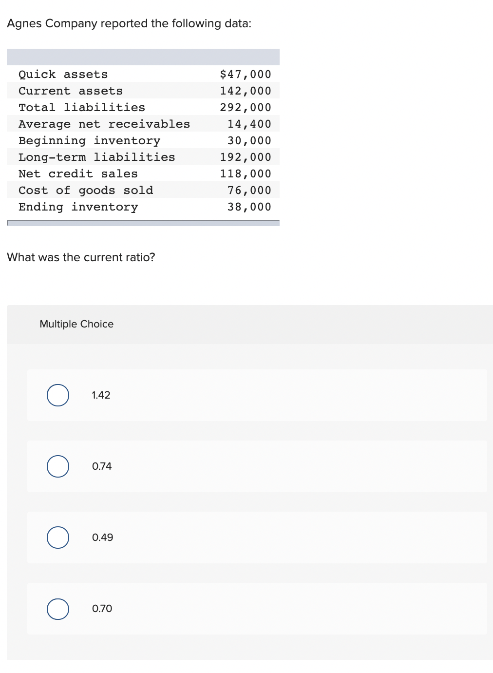 Solved Agnes Company Reported The Following Data Quick Chegg Com