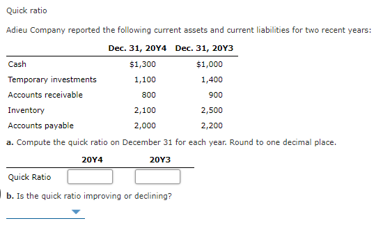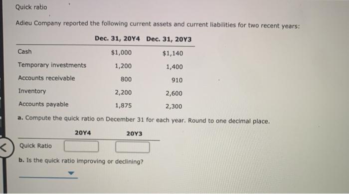 Solved Quick Ratio Adieu Company Reported The Following Chegg Com