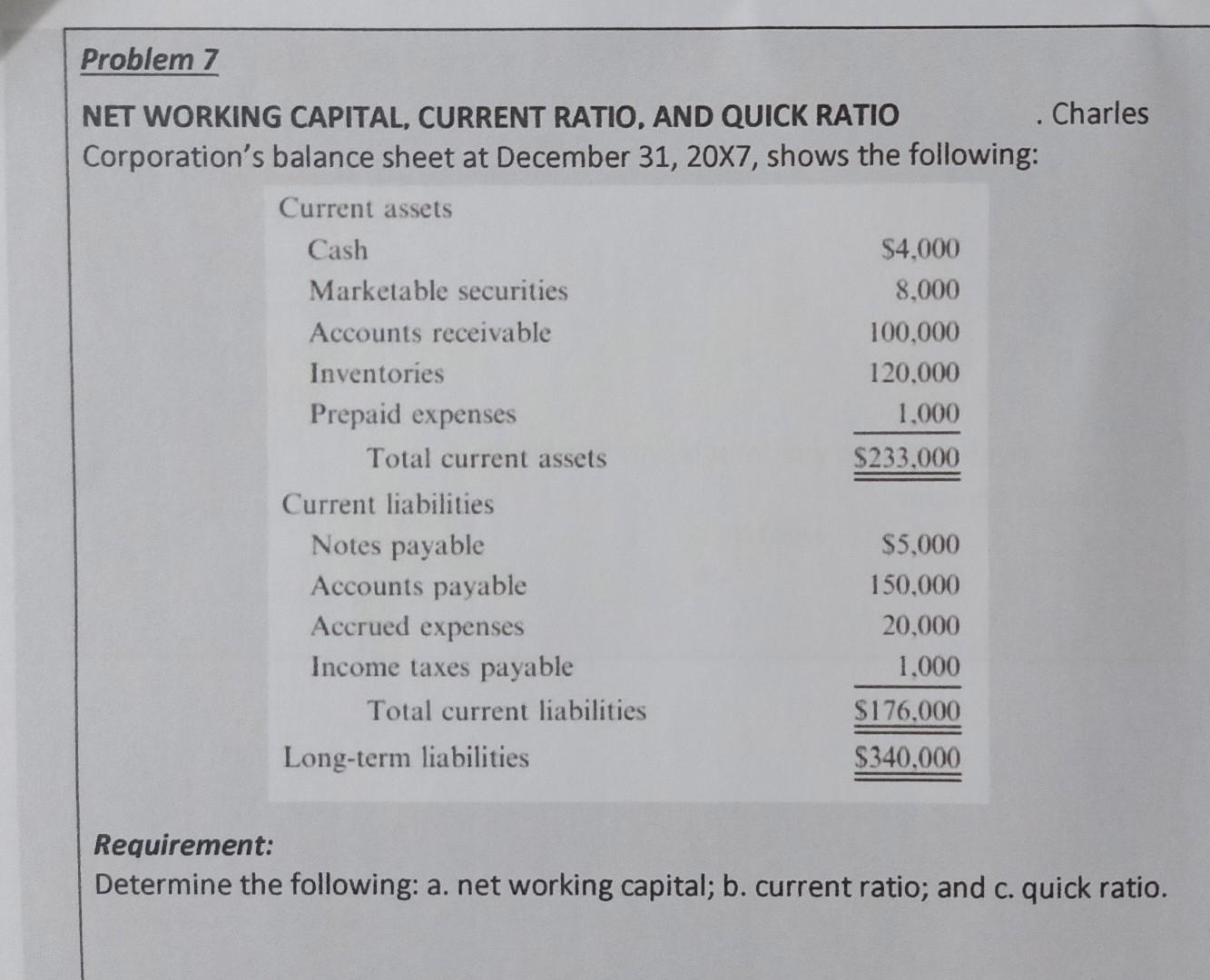 Solved Determine The Following A Net Working Capital B Chegg Com