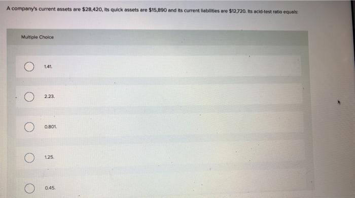 Solved A Company S Current Assets Are 28 420 Its Quick Chegg Com